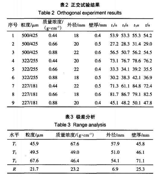 主軸轉(zhuǎn)速為2500rpm,軸向壓力為780N時(shí),采用正交分析法獲得的試驗(yàn)結(jié)果 ,如表2所示 。其中t、t2-,t、、t分別代表3次鉆孔的時(shí)間及平均時(shí)間。對表2的正交試驗(yàn)結(jié)果進(jìn)行極差分析 ,獲得的計(jì)算結(jié)果 ,如表3所示 。其中 ( l、2、3)為各因素的 1、2、3水平試驗(yàn)結(jié)果之和的平均值 ,R為極差 。 從表3可以知道 ,電鍍金剛石鉆頭的結(jié)構(gòu)參數(shù)對碳化硅陶瓷孔加工效率的影響程度為:壁厚>濃度>粒度>外徑 ,鉆頭的壁厚對孔加工效率的影響最大,外徑對其影響最小 。因素最優(yōu)水平組合為鉆頭壁厚 0.4 mm、金剛石磨粒的質(zhì)量濃度 0.88g/cm 、粒度500/425 m、鉆頭外徑20mm,此時(shí)碳化硅陶瓷的孔加工效率最高。圖3為電鍍金剛石鉆頭的結(jié)構(gòu)參數(shù)對碳化硅陶瓷