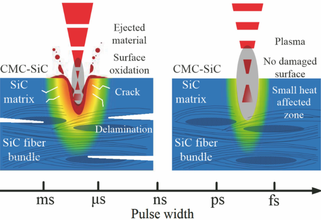 圖9 不同脈沖寬度激光與CMC-SiC的作用機理