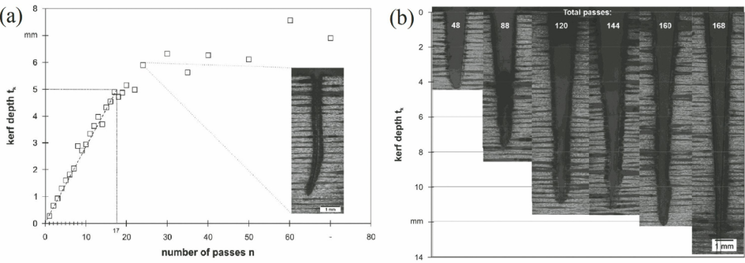 圖10 激光切割效果對比:(a)焦點固定式切割;(b)焦點平移配合進給式切割