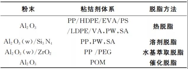 氧化鋁陶瓷注射成型常用粘結劑組分和相應的脫脂方法